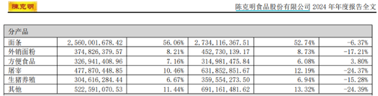 此外,随着消费者的主食选择日益多元化,部分消费者给传统白挂面贴上“精制碳水”的标签,这也对公司产品销量造成一定的冲击。2024年以及今年上半年,克明食品的面条销量分别同比下滑6.73%和11.02%。因此,在市场需求结构性转变的背景下,如何有效遏制销量下滑趋势,已成为克明食品亟待破解的核心难题与经营焦点。